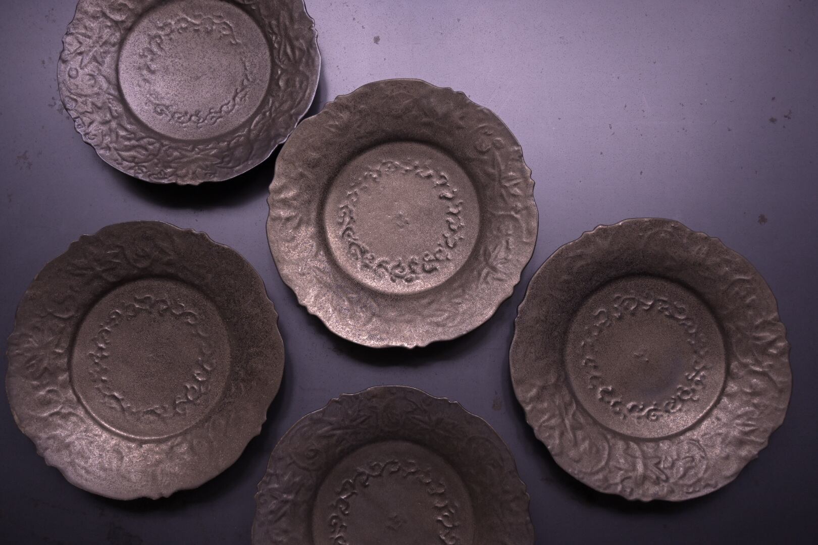 前田麻美 ブロンズ釉花唐草稜花中皿