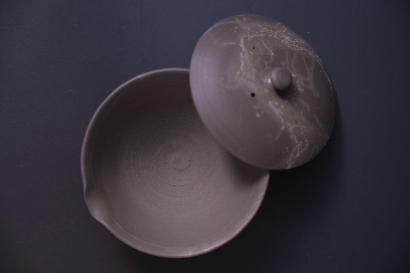水簸によりつくられた粒子の細かい常滑の土をメインに、独自調合の土を作成。焼き方は還元焼成ですが、藻掛けの茶色をより出すため焼き方をひと工夫されています。この「藻掛けを綺麗に表現する」という水野さんのこだわりをお楽しみください。