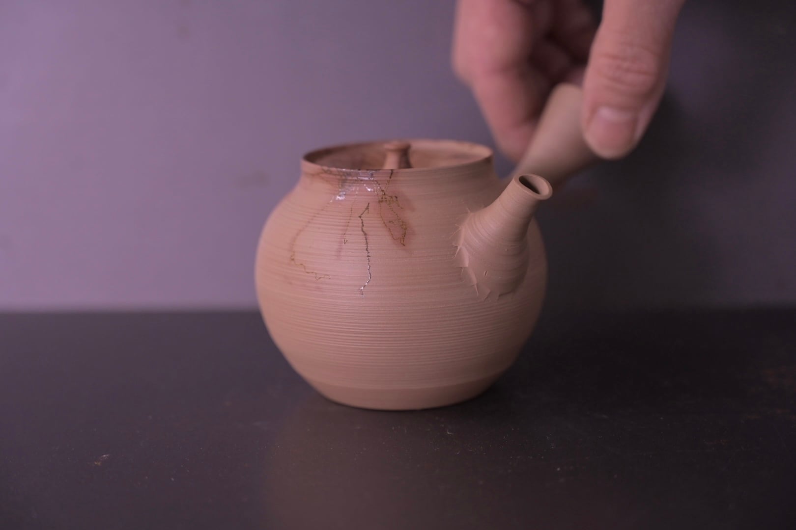 急須に茶葉とお湯を入れて持つ時にちょうど良い重さになるように、急須全体の重さを考えて土をつくり急須を制作しています。