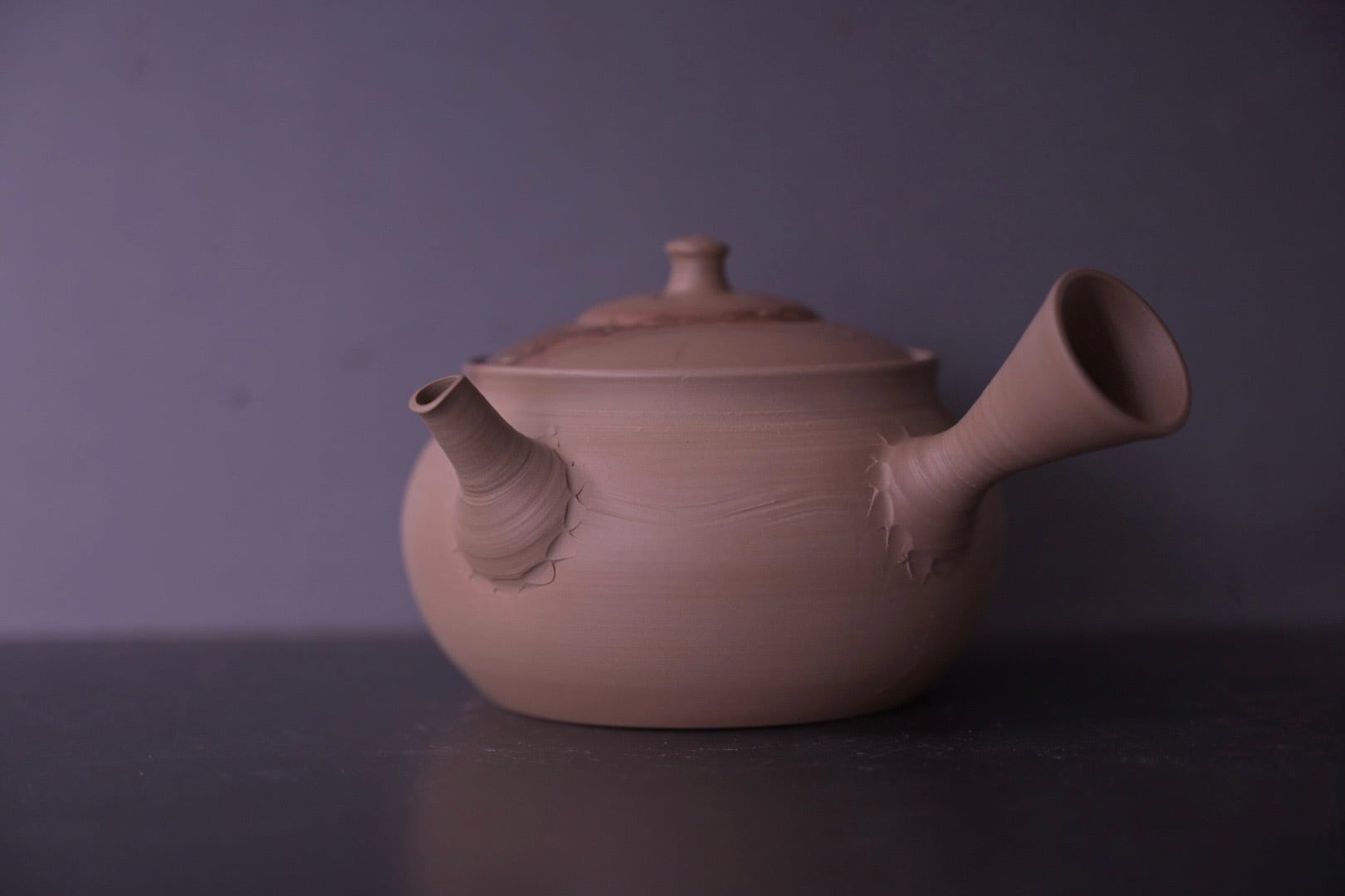 急須に茶葉とお湯を入れて持つ時にちょうど良い重さになるように、急須全体の重さを考えて土をつくり急須を制作しています。