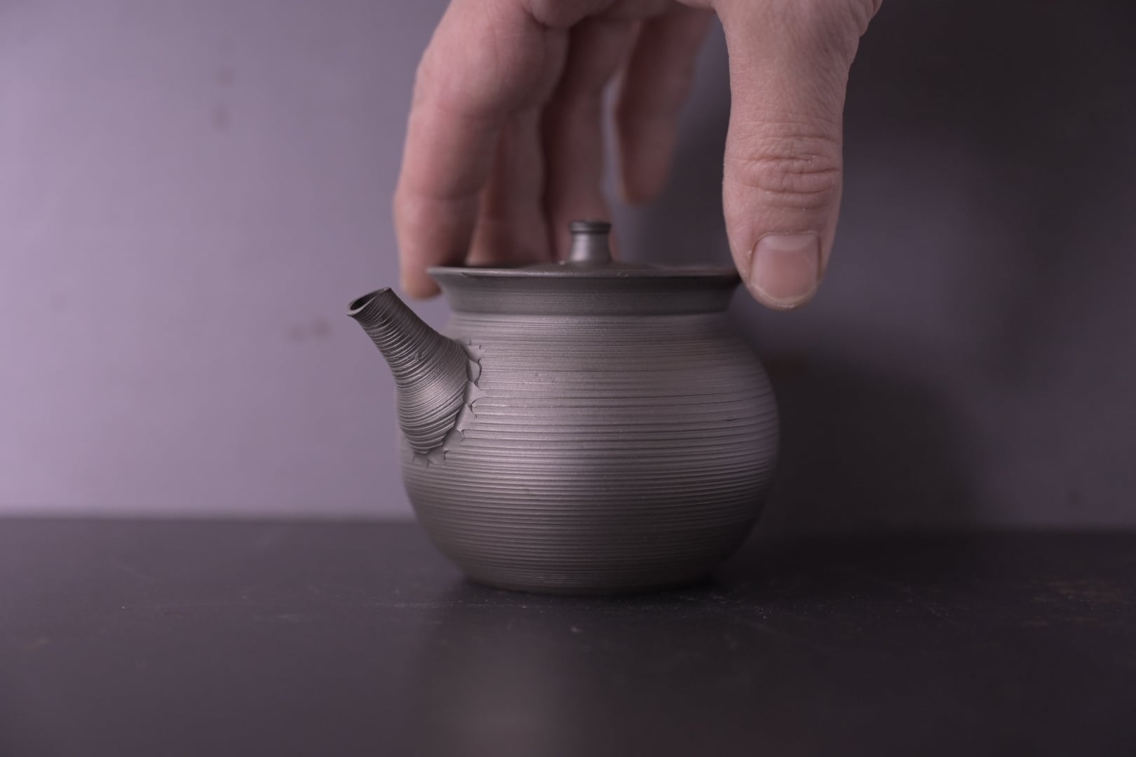 急須に茶葉とお湯を入れて持つ時にちょうど良い重さになるように、急須全体の重さを考えて土をつくり急須を制作しています。
