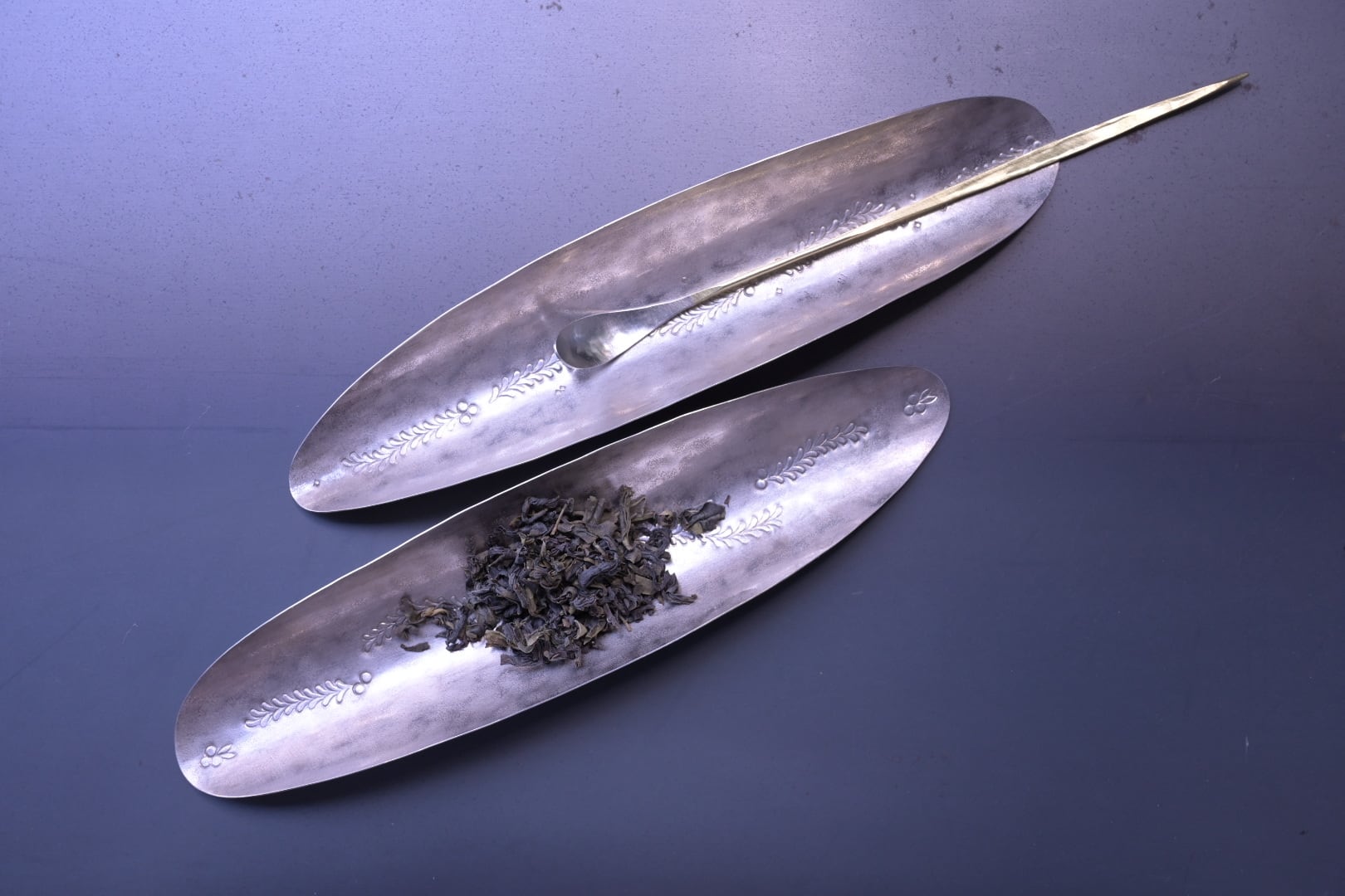 西川美穂 洋白 茶則 葉っぱ模様
