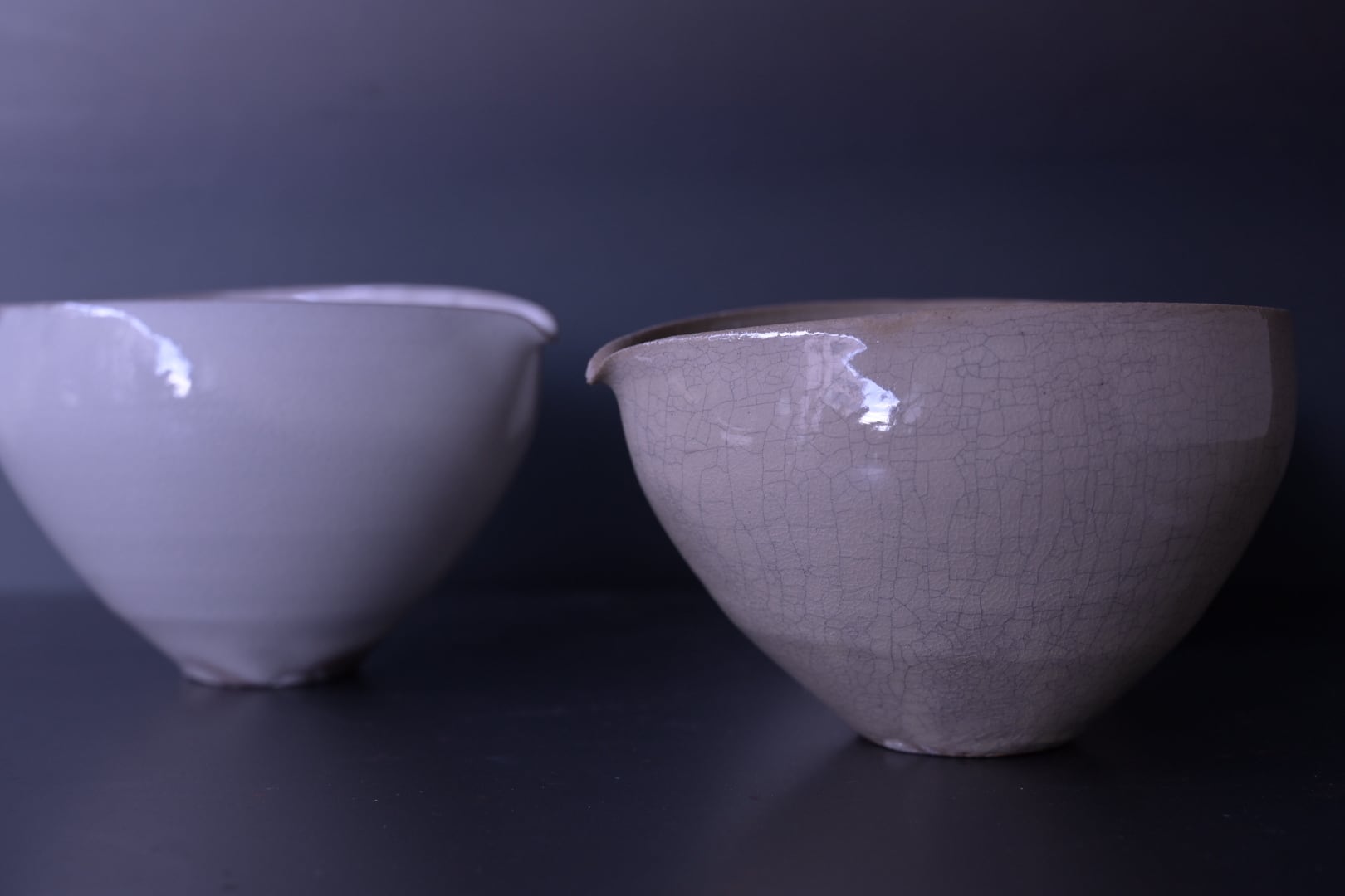 大きさ、貫入や鉄分等の黒い点、石はぜ、釉薬の掛かり具合等々少しずつ違いが有ります。