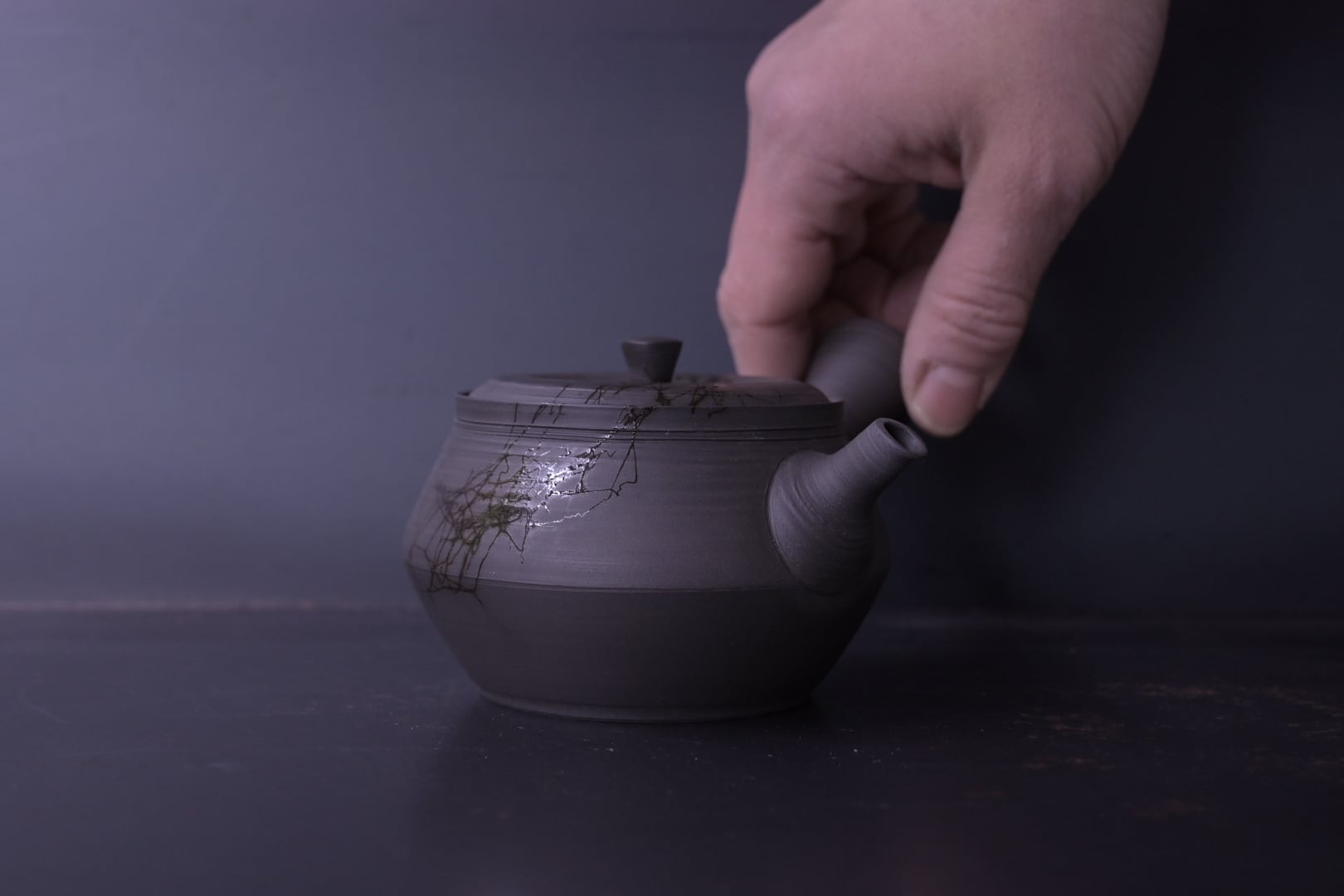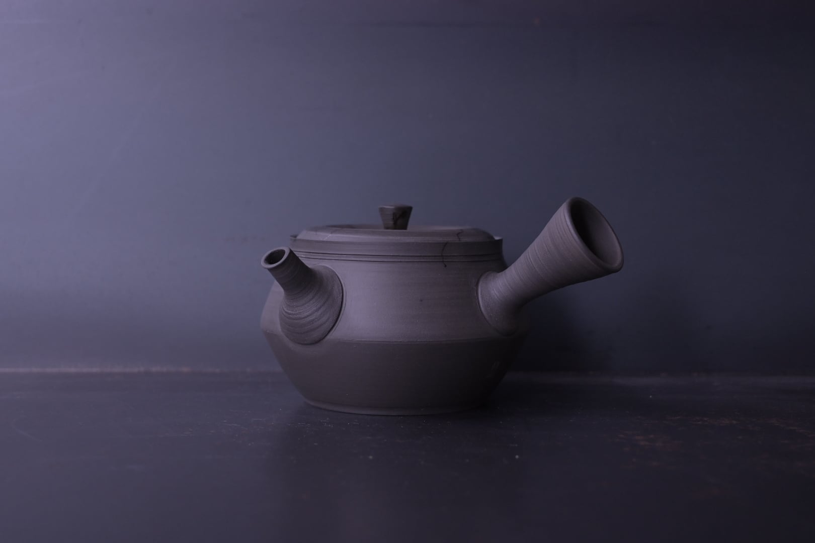 水野博之 黒泥黒藻焼急須(そろばん型)
