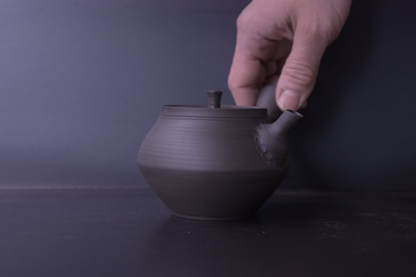 水野博之 黒泥黒藻焼急須(そろばん型)