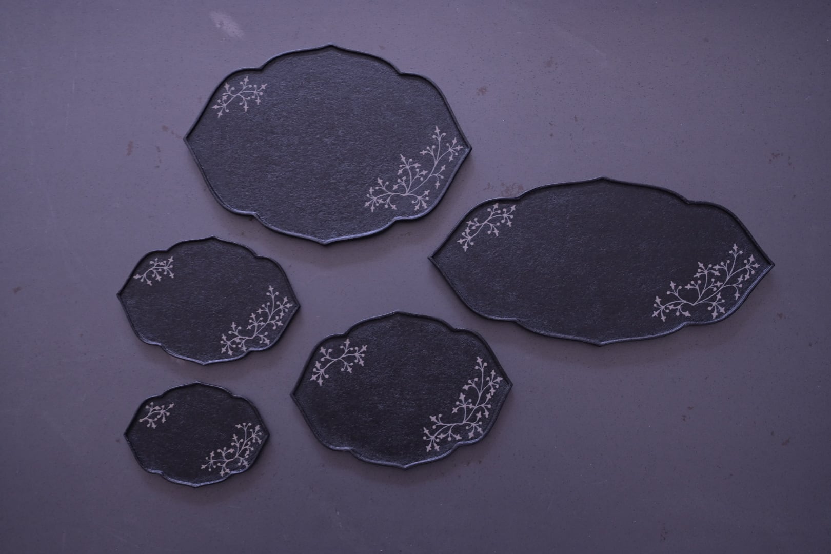 蝶野秀紀 輪花皿 葉 上絵(カリフラワー)黒 中