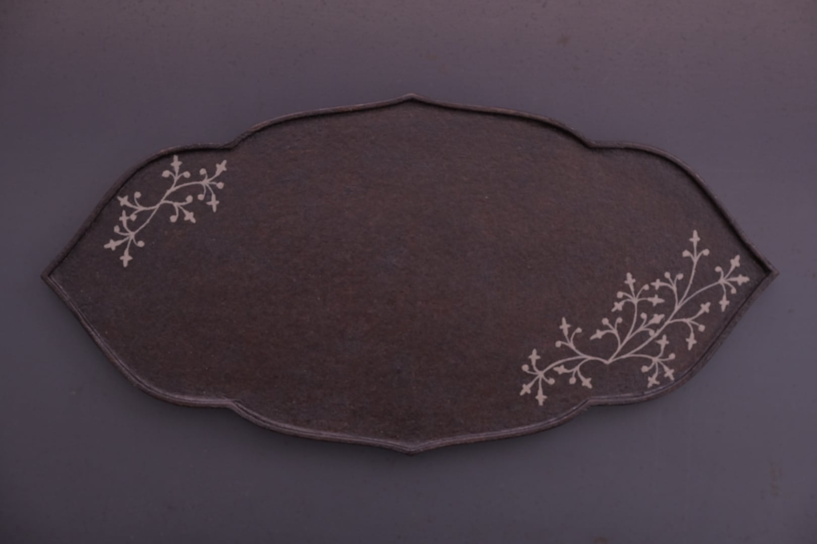 蝶野秀紀 輪花皿 葉 上絵(カリフラワー)茶 中長