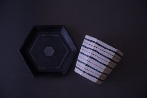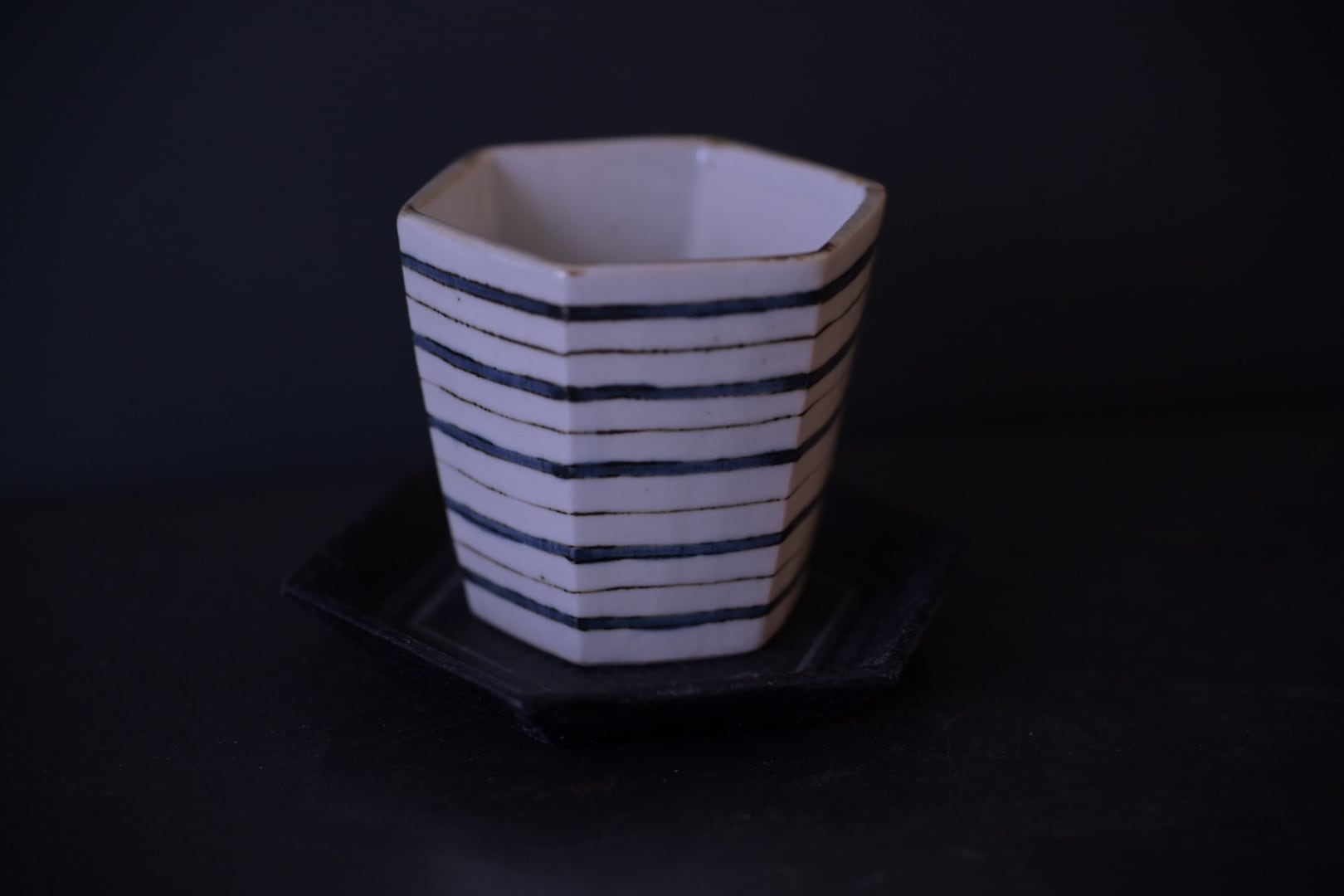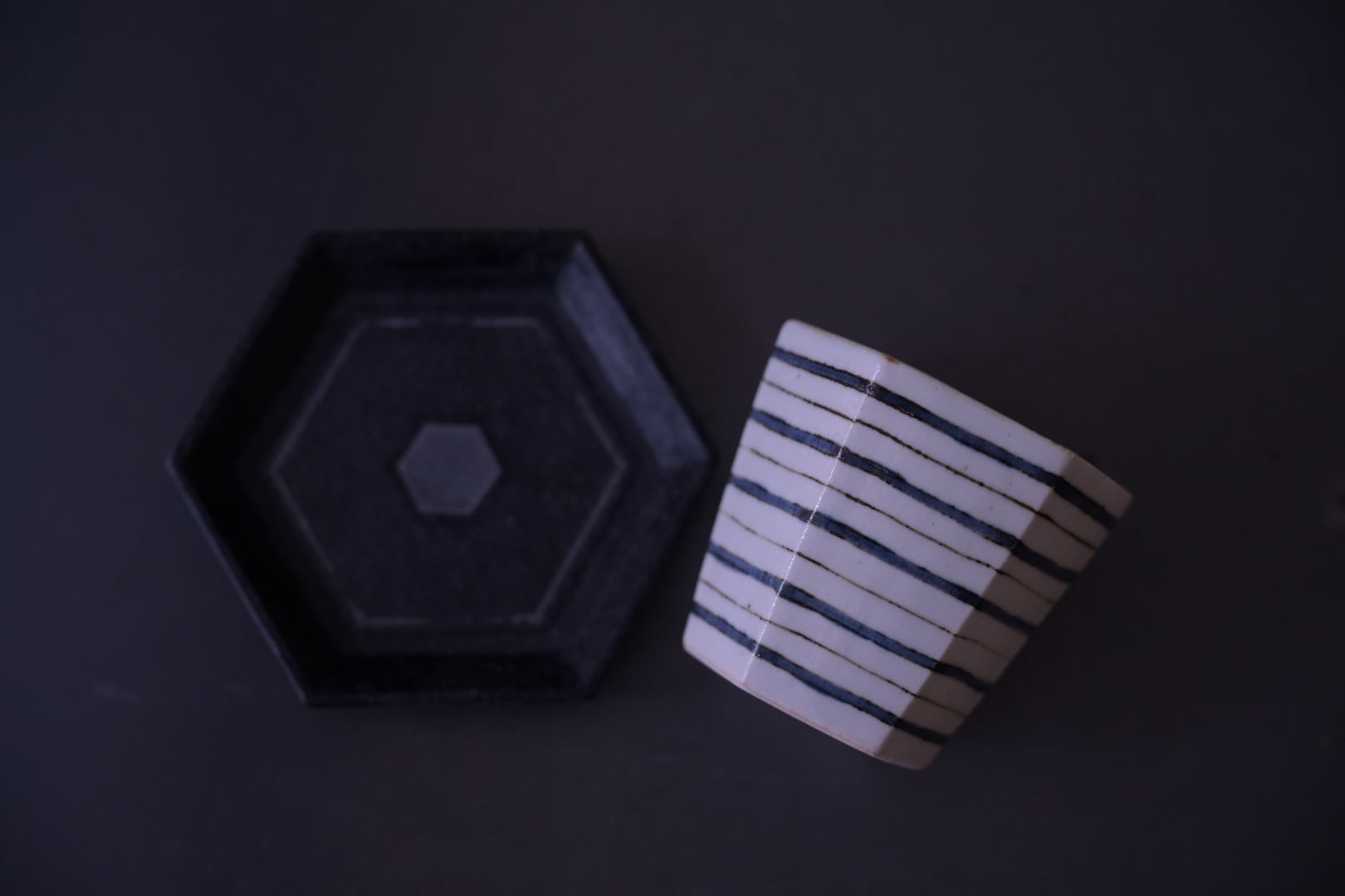 高島大樹 六角杯と皿(ボーダー)(コラボ)