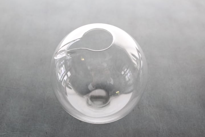ガラスの風船のような丸いフォルムが美しい片口。涼し気に冷酒や冷茶を入れてのおもてなしや、一輪挿しにしても素敵です。