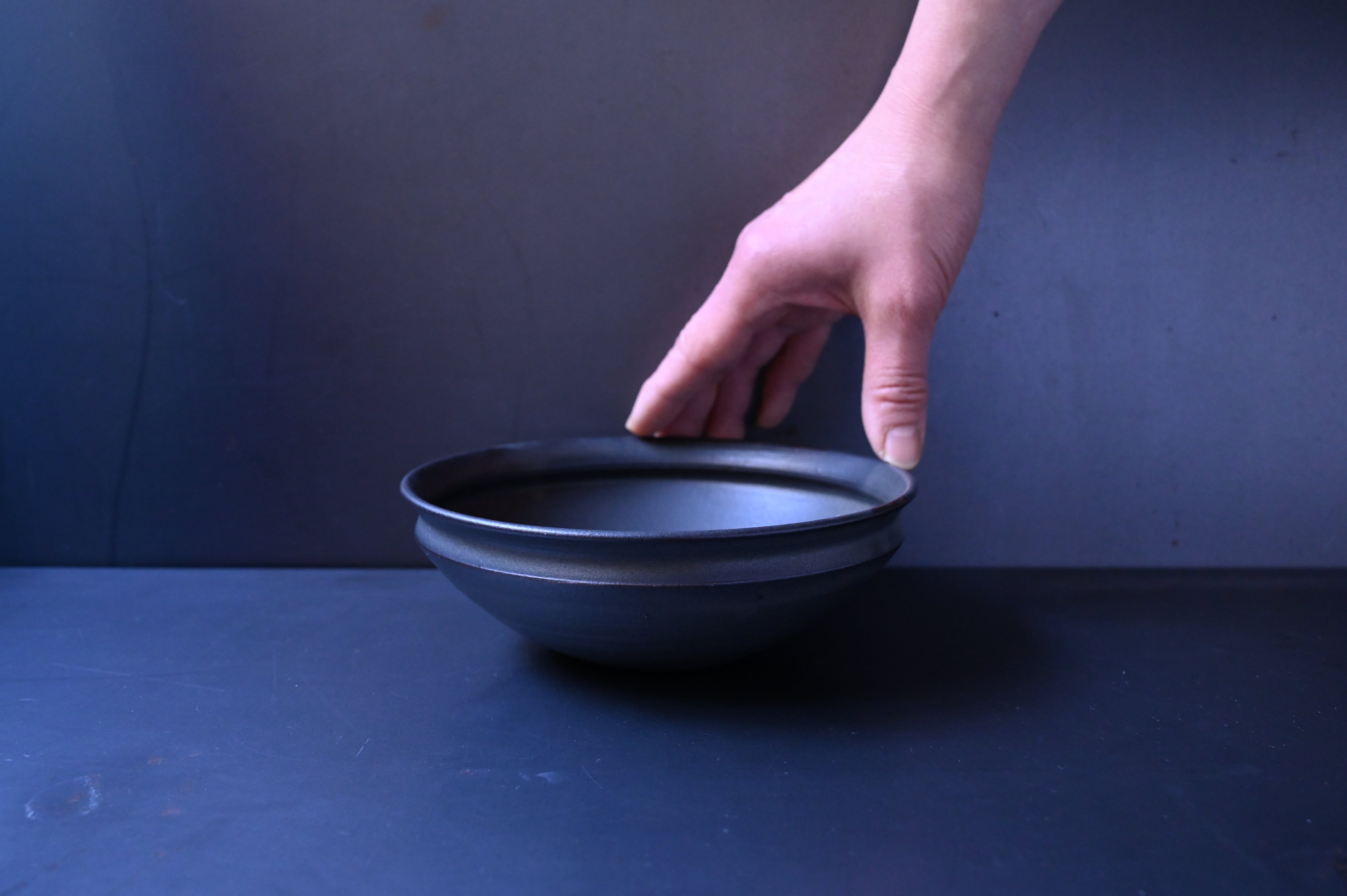 荒賀文成 黒釉五寸馬たらい皿