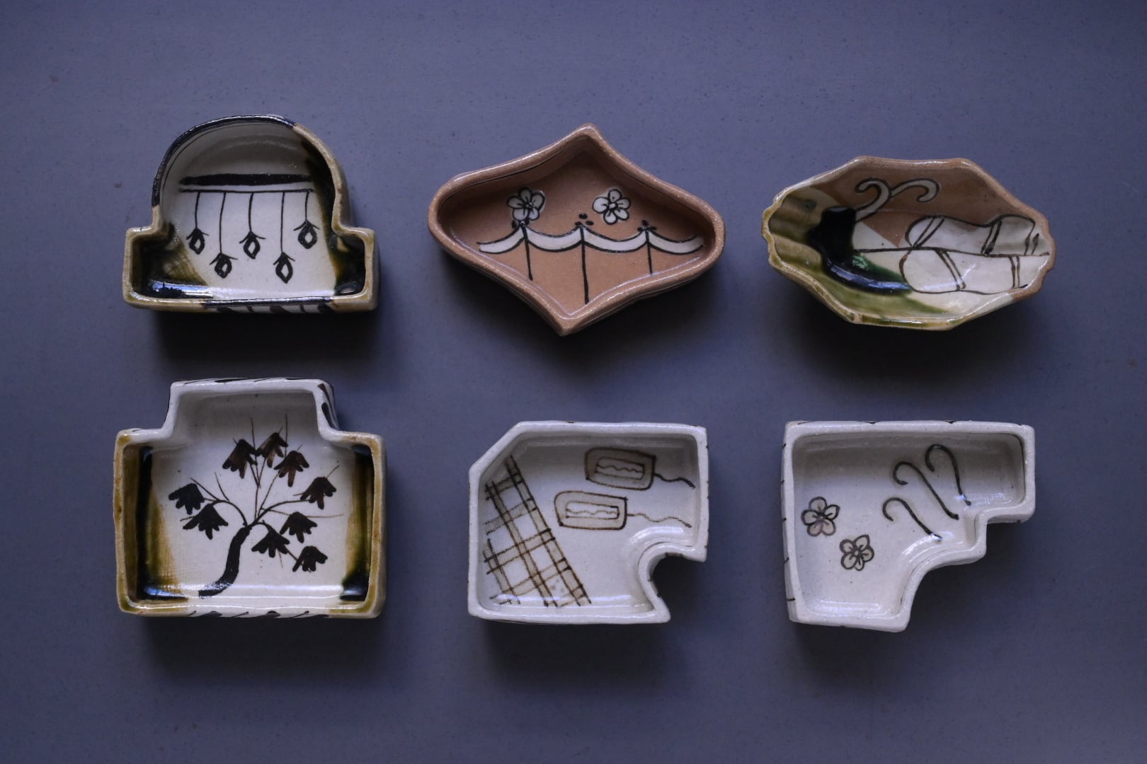 「へうげもの」にも多数登場する向附を細部まで拘り、手のひらサイズにミニチュア化した「豆向付」は数百種類と驚く数の型を作陶している。