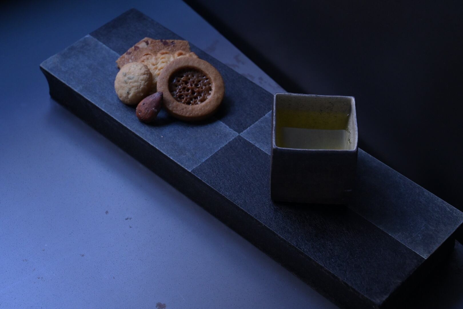 蝶野秀紀 和紙貼ガラスコート敷台 長方形(市松)M 黒灰