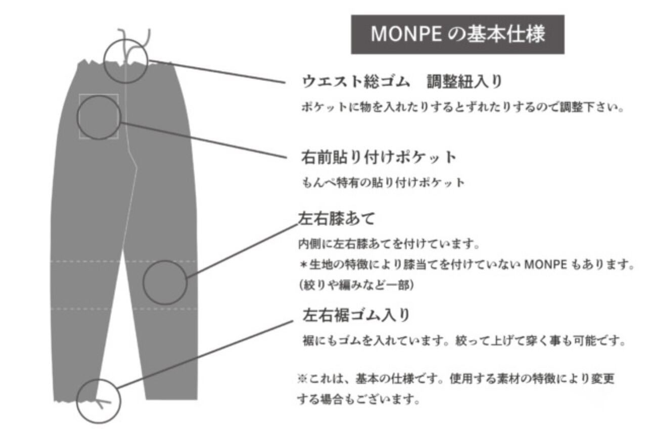 生地は、浜松市にある古橋織布で織られたものを使用しており、多種多様な生地を生産している遠州産地の中でも、低速の広幅シャトル織機で高密度に織ることを特徴とされています。目の詰まった高密度の生地であるけれども、シャトル織機でゆっくり織ることでしっかりとしながらも風合いのある生地を織り上げることができます。使用していくうちに生地の表情も徐々に変わり、経年変化も楽しめます。同じ浜松市を拠点に服づくりをされているHUIS.の協力もあり生まれたコラボもんぺです。