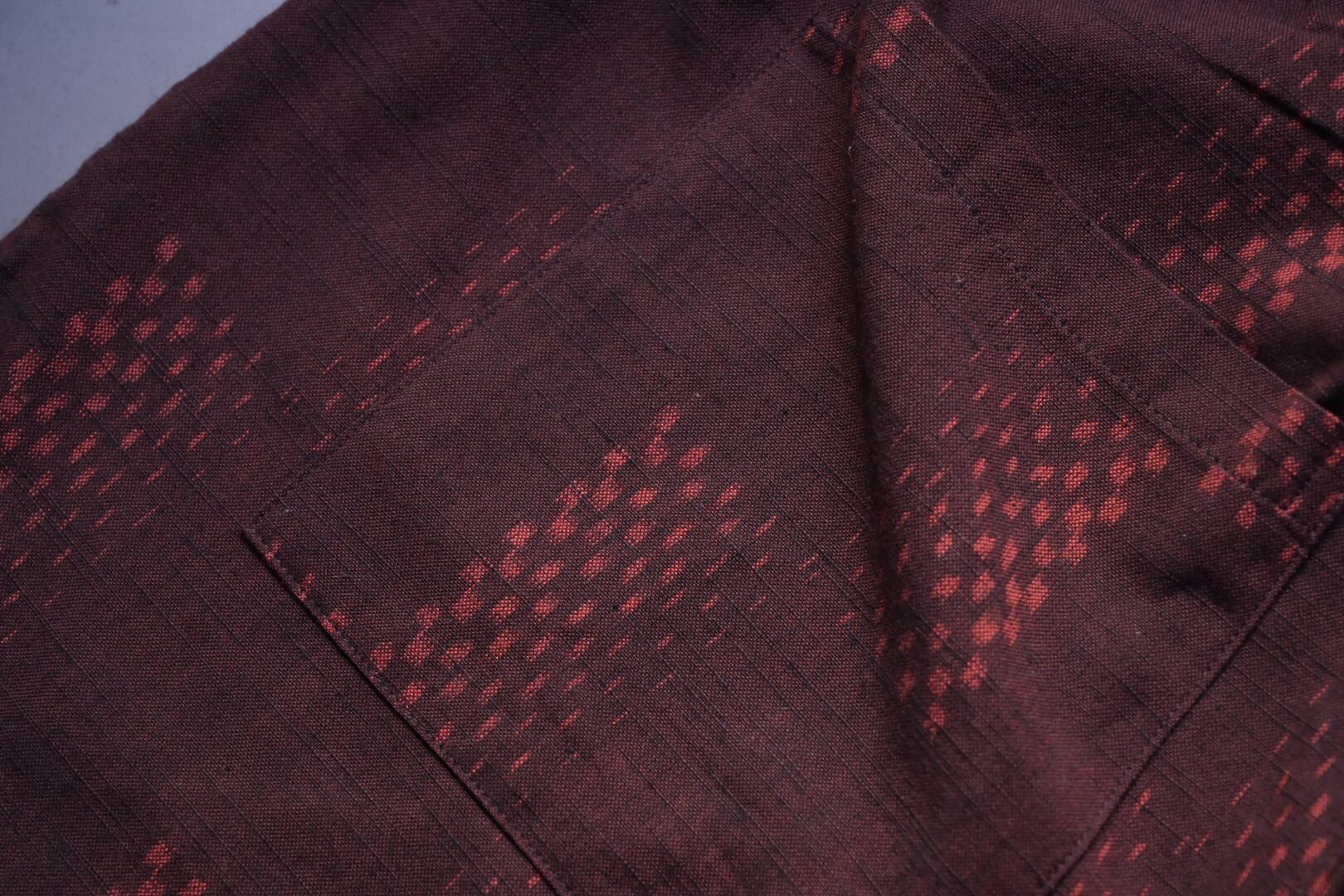 福岡県南部の筑後地方で200年以上にわたって織られる久留米絣。昔ながらの織り機を使用しているため、限りなく手織りに近い風合いで、やわらかく丈夫な綿織物です。そのため、昔からこの地方ではもんぺの生地が織られていたのです。