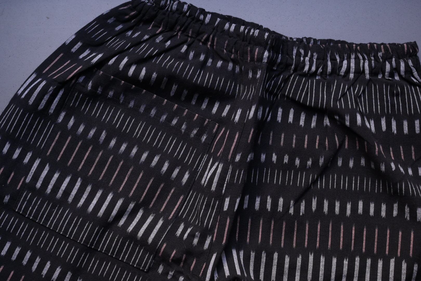 絣(かすり)は先染めで模様を生み出すのが特徴です。織る前の糸を括って染めて解いて、白く残ったところが柄になるという技法で、独特のかすれた模様になります。